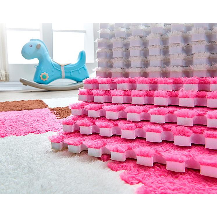 - Chất liệu từ xốp EVA mặt lông, lông được dệt trực tiếp lên tấm xốp, chất liệu an toàn cho trẻ em và người già, thân thiện với môi trường