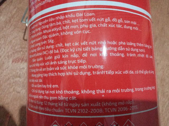 Công dụng : dùng để bả , chít , kẹt tom vết nứt gỗ ,sơn mài...- Đặc quánh không vón cục