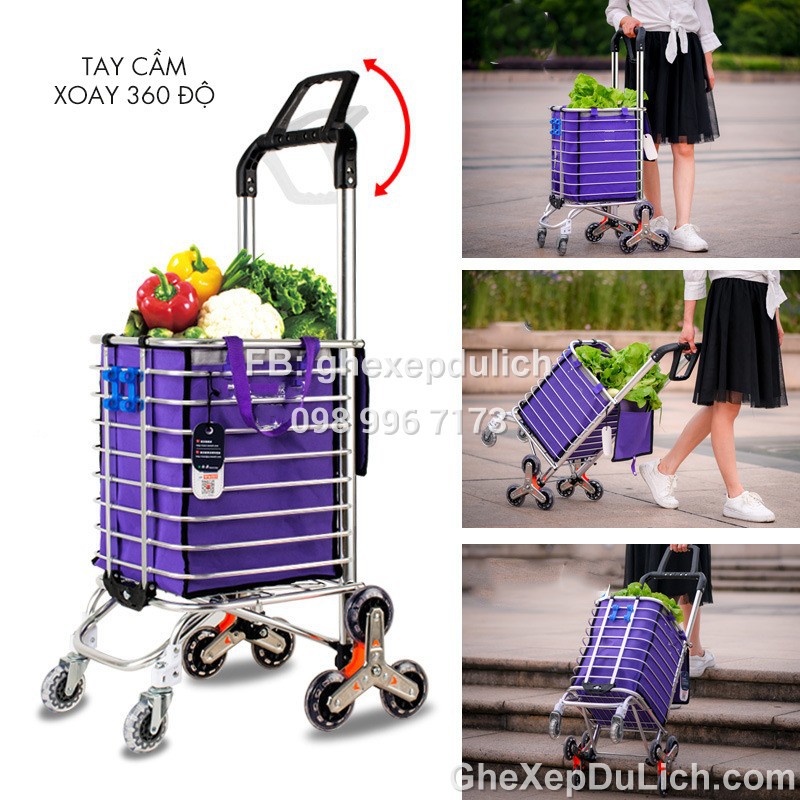 Nhà cửa & Đời sống > Dụng cụ & Thiết bị tiện ích > Xe đẩy || Xe Kéo Đi Chợ 6 Bánh Leo Cầu Thang, Tay Xoay 360 Độ - Tặng kèm Túi - Phiên Bản 2020Còn hàng