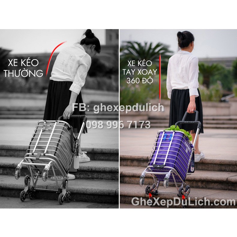 Xe Kéo Đi Chợ 6 Bánh Leo Cầu Thang, Tay Xoay 360 Độ - Tặng kèm Túi - Phiên Bản 2020