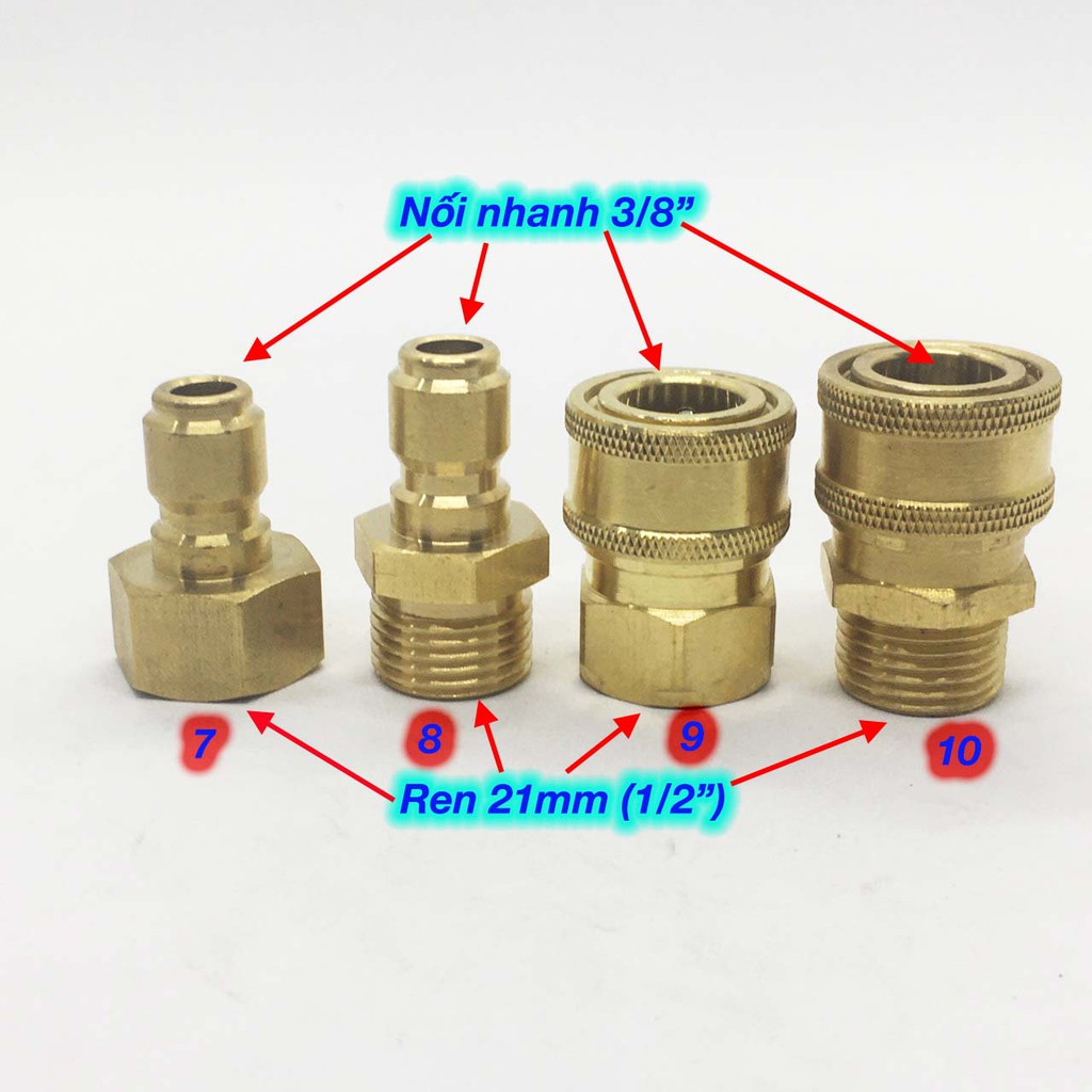 Khớp nối nhanh bằng đồng 3 phần 8 dùng nối nhanh dây áp lực máy rửa xe
