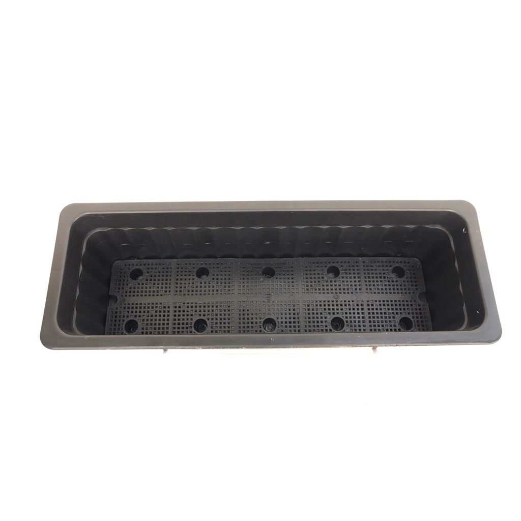 - Khay trồng rau 63.5x22x19H được thiết kế với kích thước nhỏ gọn, thích hợp trồng các loại rau ăn lá, rau gia vị và các loại rau mầm như: cải ngọt, bẹ xanh, cải rổ, rau muống, rau quế, rau thơm, Khay được làm từ nhựa PP rất bền với nhiệt độ trong thời gian dài. Sản phẩm được thiết kế với 02 lỗ thoát nước thông minh dưới đáy, chống ngập úng và giữ ẩm cho đất khá tốt.