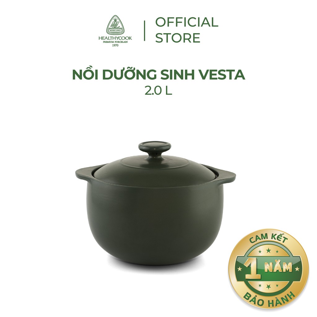 Nồi dưỡng sinh Vesta 2.0 L Minh Long + nắp (CK)- Healthy Cook- Xanh Rêu