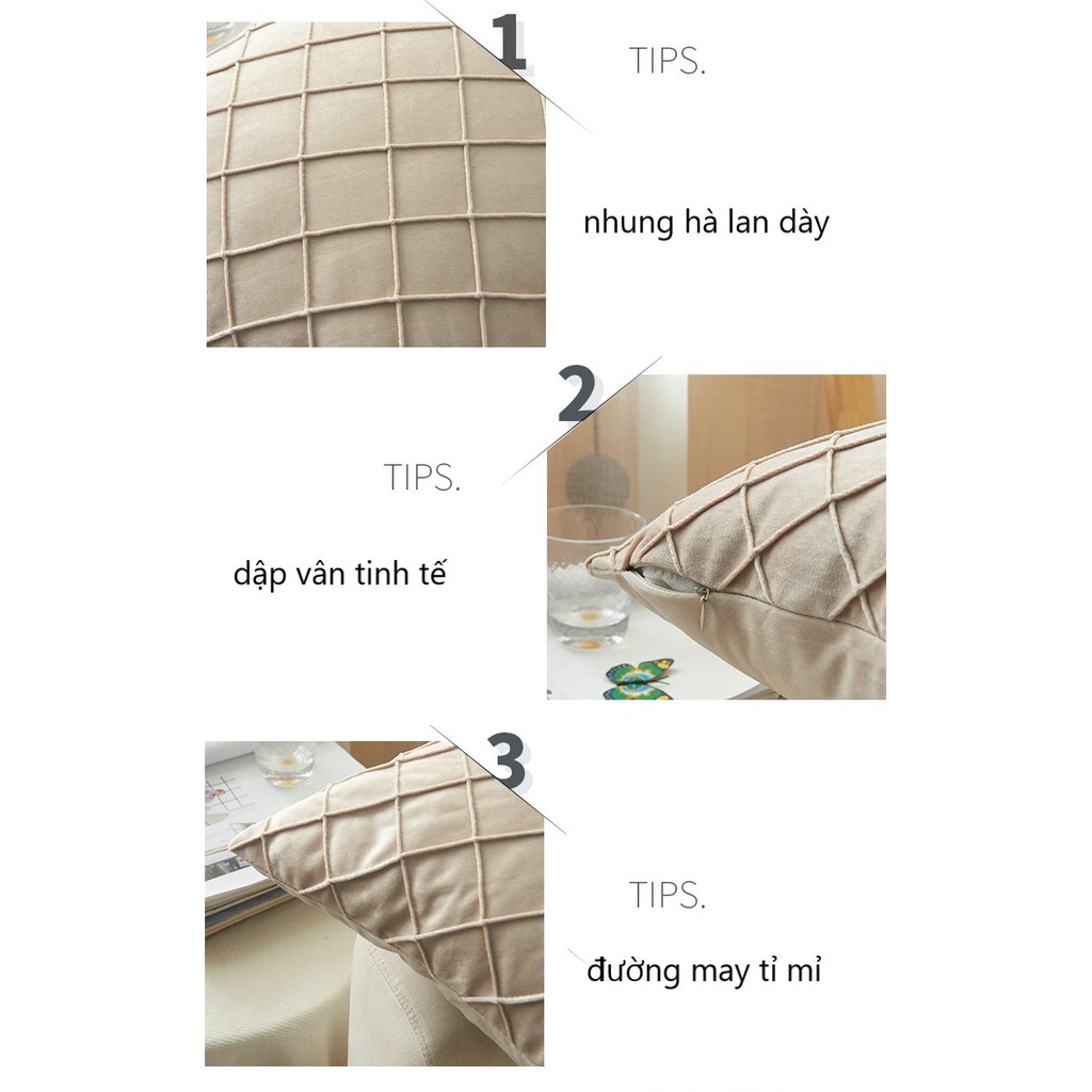 Nhà cửa & Đời sống > Nội thất > Đệm ngồi || Gối Tựa Lưng Nhung Hà Lan Dập Vân Kim Cương Trơn MàuCòn hàng