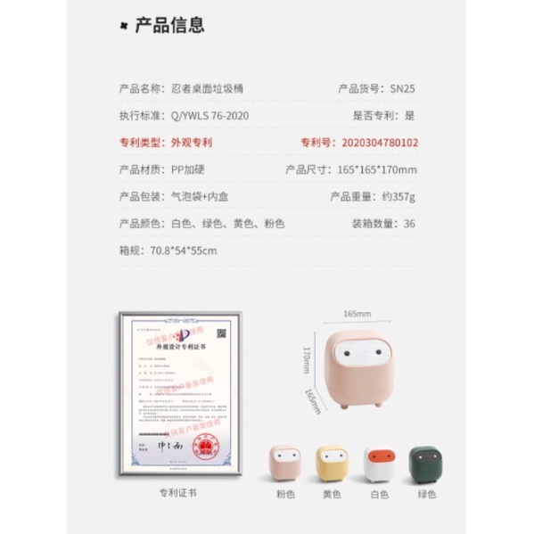 🤩Thùng Rác Mini Để Bàn Thùng Rác Nhỏ Nút Bấm Thông Minh Tiện Lợi Để Bông Tẩy Trang Nội Địa Nhật Hình Ninja PUMITA🤩✮Kích thước: 16.5x16.5x17 cm