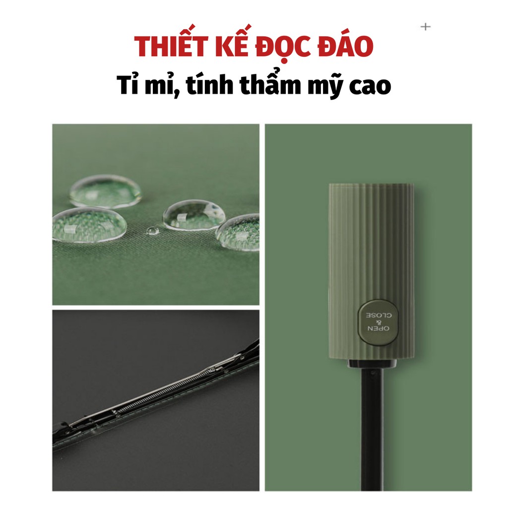 Ô dù đóng mở tự động 2 chiều cao cấp được sản xuất với công nghệ Nhật Bản bằng loại vải dù cao cấp chống nắng, chống thấm nước mưa, chống tia UV . Chất liệu không những dai, mịn mà còn rất bền, đẹp, không phai màu nên bạn có thể yên tâm sử dụng cả những ngày trời mưa hay nắng gắt.- Ô dù sản xuất với công nghệ Nhật Bản