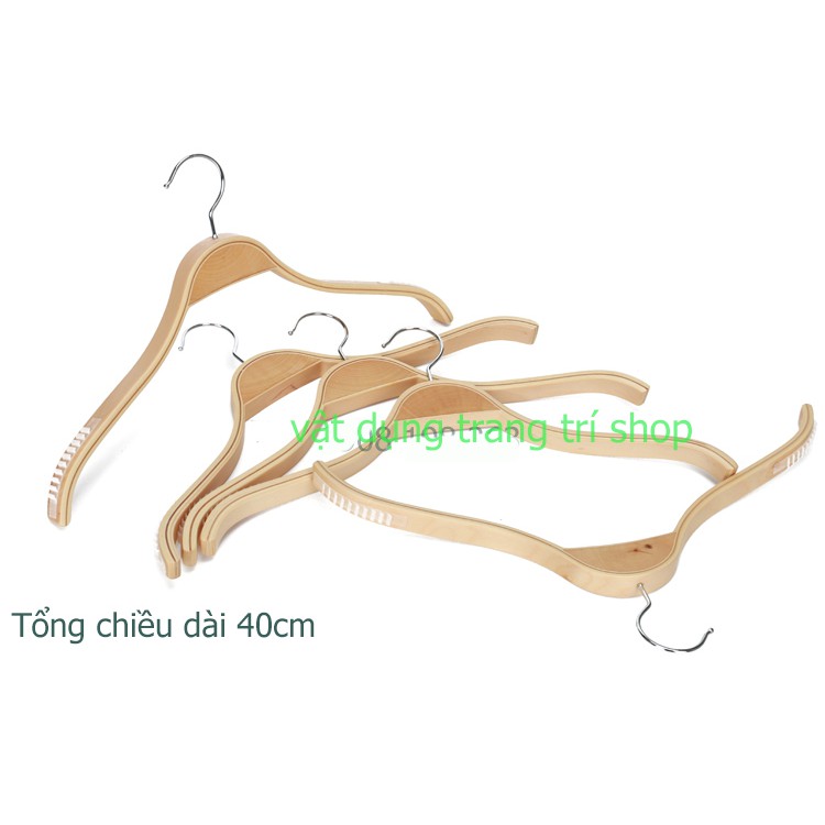 Móc Gỗ Treo Quần Áo Gỗ Ép Vai Đệm 40cm Đầu Móc Tròn ( Bộ 10 Móc)