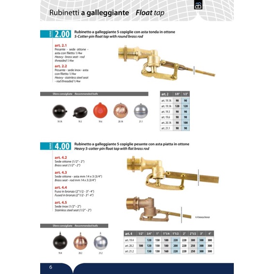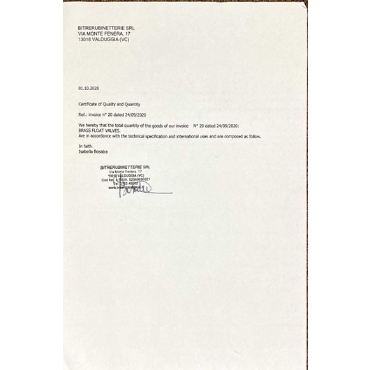 Chất liệu phao cơ làm bằng đồng cao cấp sản xuất tại ý .