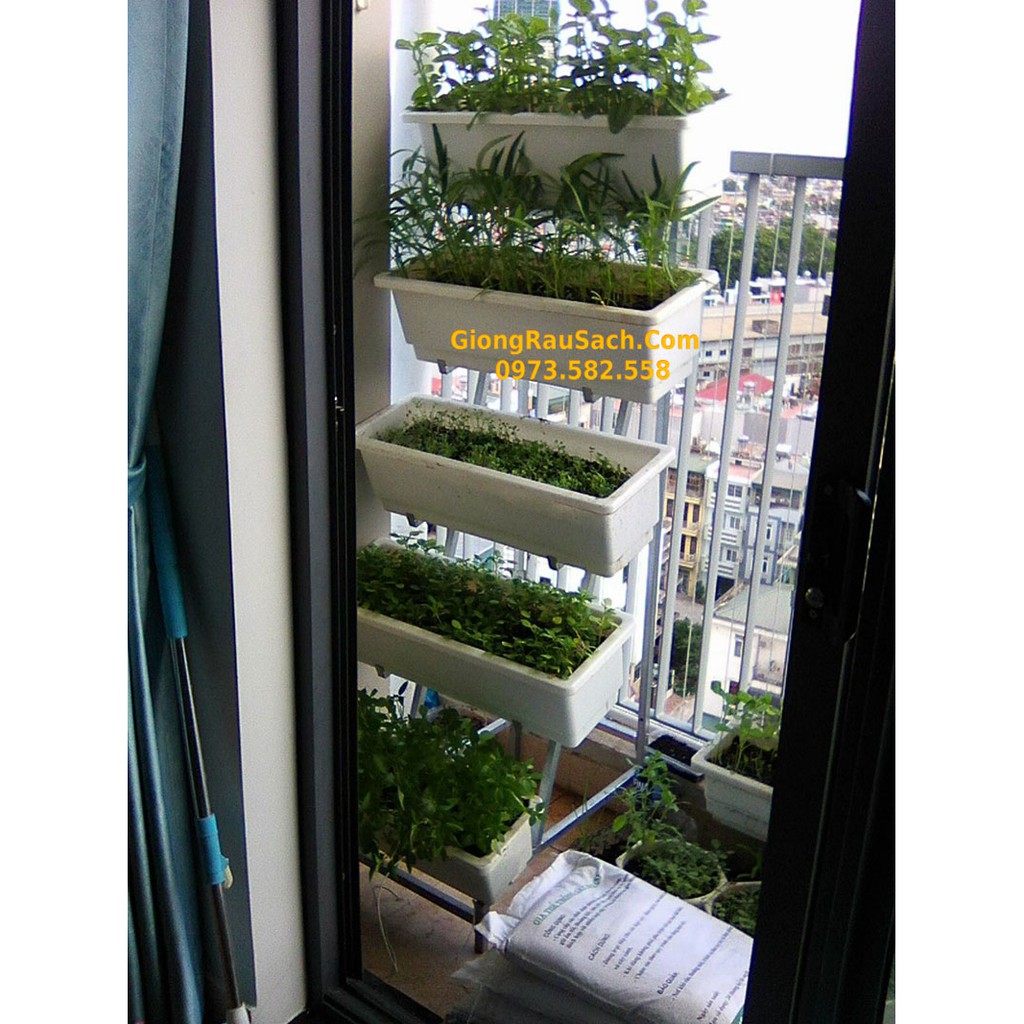 Kệ Trồng Rau sạch đặt sân thượng hay ban công. Kệ được đánh giá cao bởi mặt hàng chúng tôi bán đc 4 năm.Kệ cao 1.5m, chân roẵng ra 60cm, kệ đặt vừa chậu 67*24*20cm