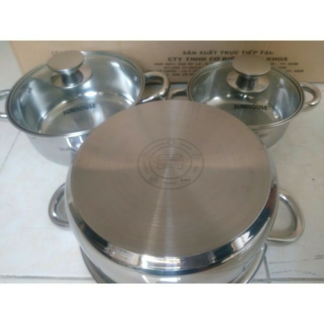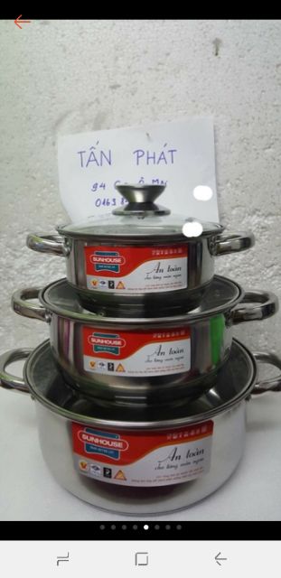 Nhà cửa & Đời sống > Dụng cụ nhà bếp > Nồi || Bộ 3 Nồi inox 3 đáy Sunhouse SH334 SH224Còn hàng