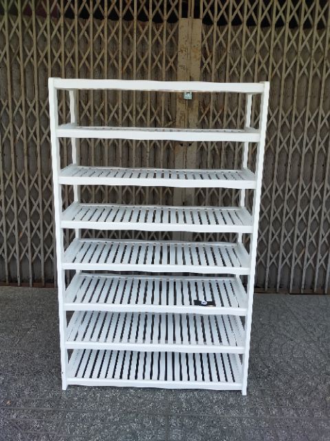 Kích thước kệ : cao 133cm. Ngang 80cm. Sâu 30cmKệ dép được sản xuất từ gỗ cao su tự nhiên. Được xử lý chống mối mọt, được ghép bằng những thanh gỗ nạn nhỏ, nhìn rất thanh mảnh, rất đẹp. Kệ có thể tháo lắp dễ dàng. Kệ thích hợp để giày dép, để gấu bông, sách vở....