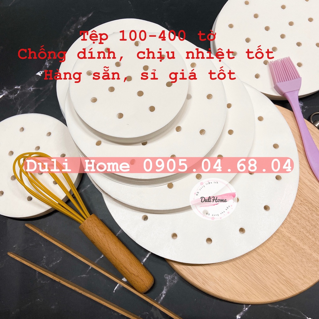 Giấy nến đục lỗ 400 tờ / thếp lót xửng hấp bánh, dimsum, lót nồi chiên không dầu.Đồ nghề cần thiết nhất cho anh chị em yêu làm bánh.