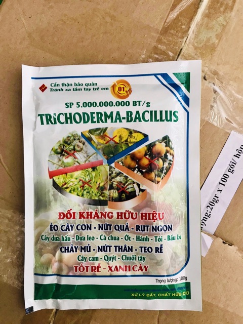 * Nấm đối kháng Trichoderma-Bacillus đậm đặc: 106 BT/gram