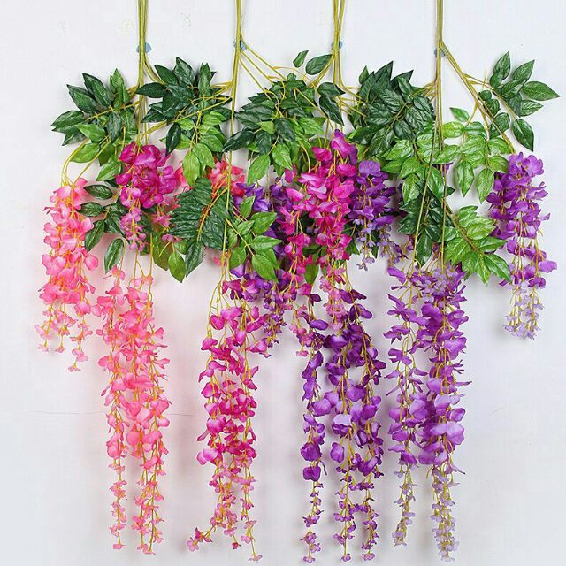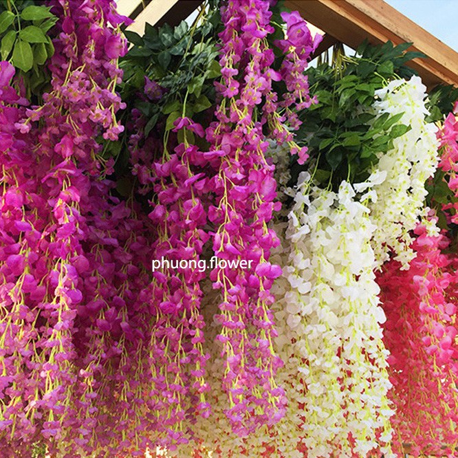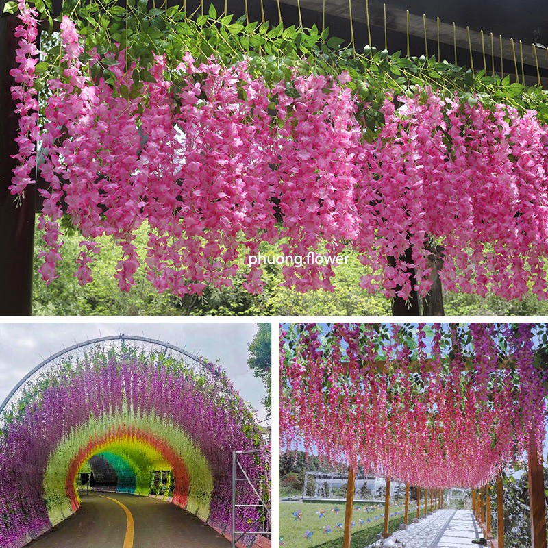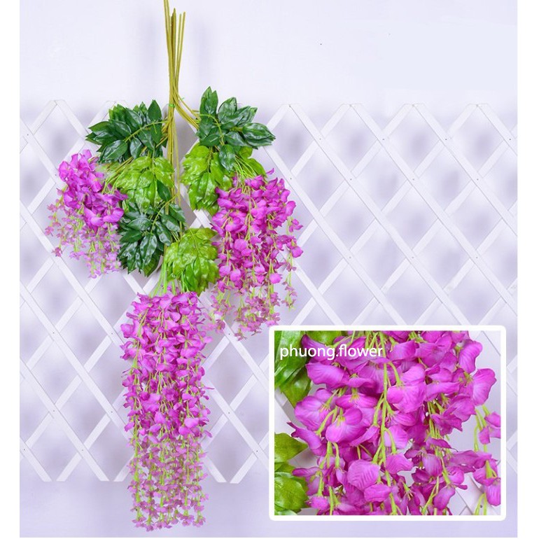 💗Hoa Tứ Đằng giả loại dài 110cm 3 nhánh dùng trang trí nhà hàng cực đẹp💗Bông hoa và lá được làm từ Nhựa vải nên vừa siêu bền chắc lại mềm mại như thật, bền màu vĩnh viễn