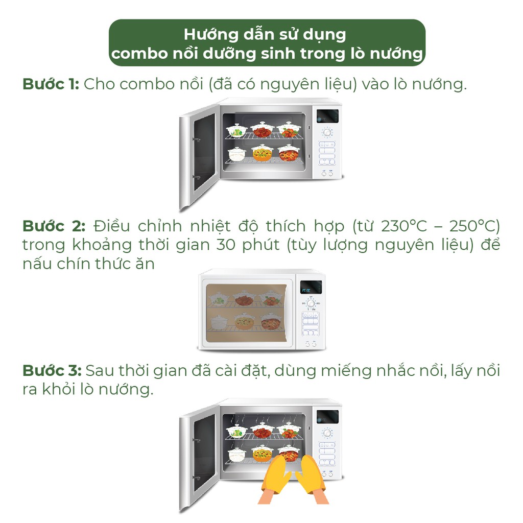 3. Hướng dẫn sử dụng combo nồi dưỡng sinh trong lò nướng