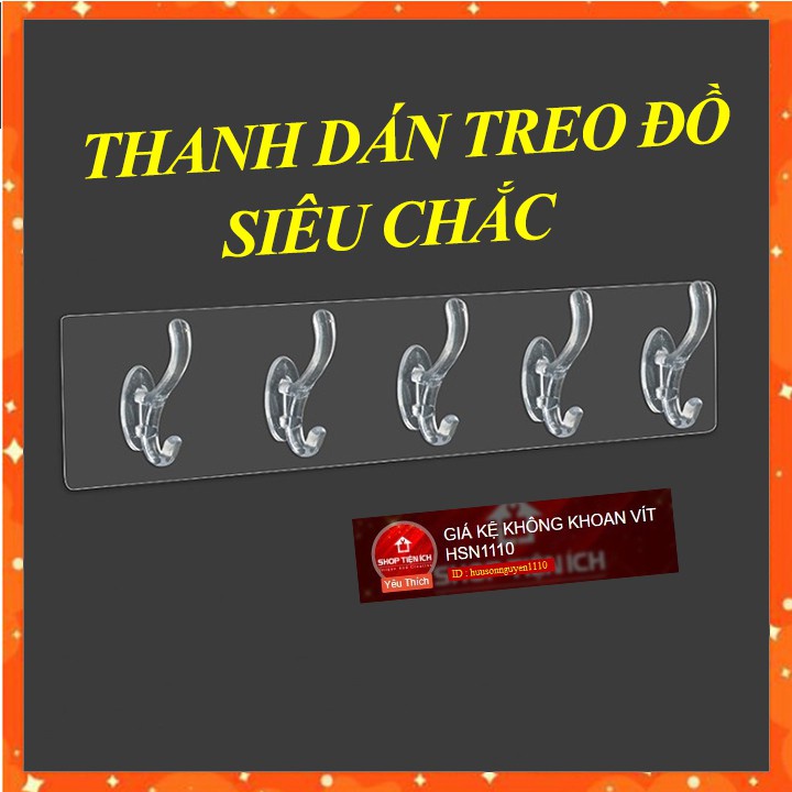 Giới thiệu (Hàng có hộp) Thanh dán tường treo đồ 5 móc trong suốt siêu dính (HSN)