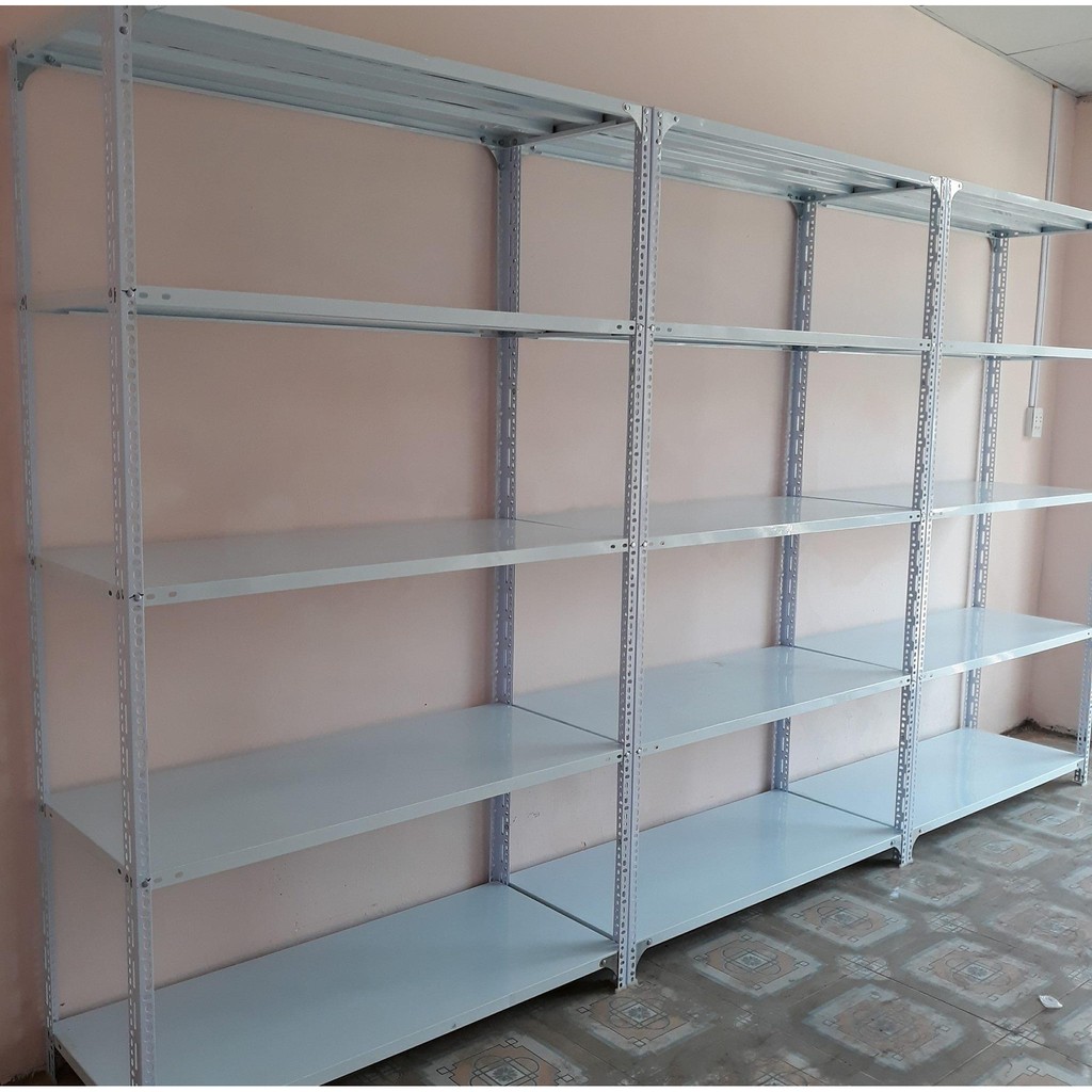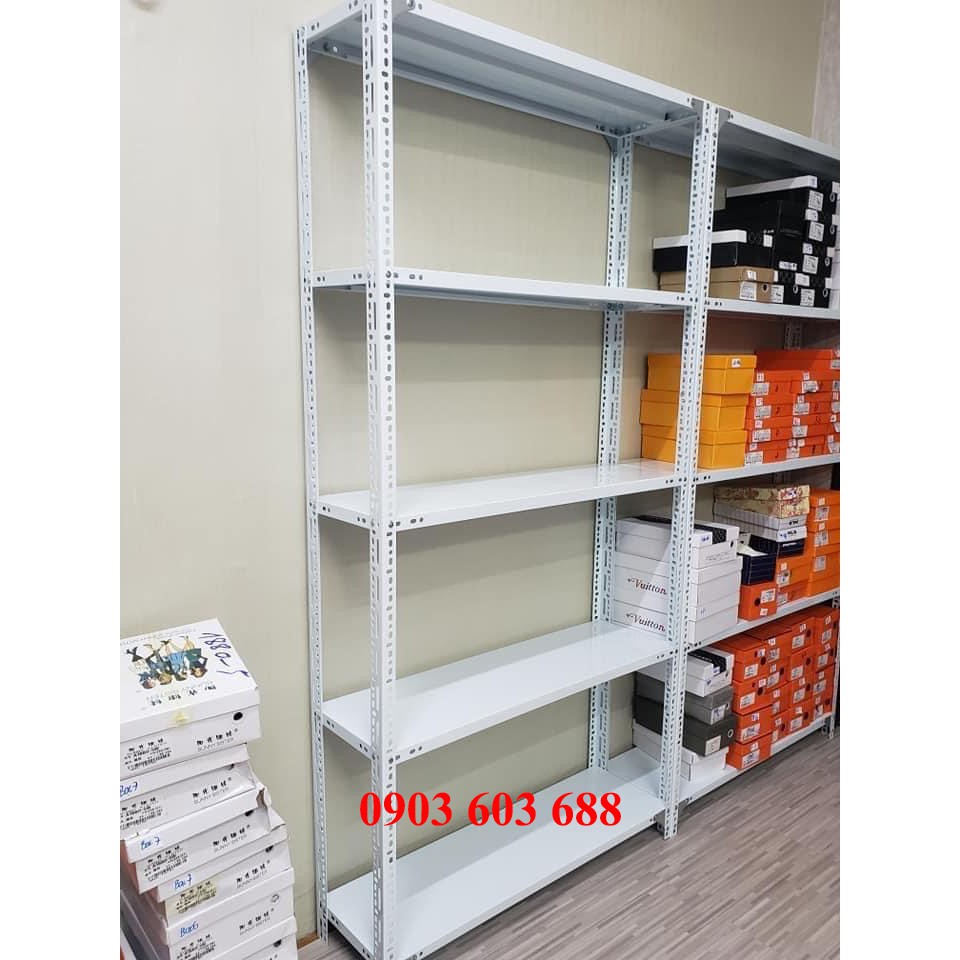 Giá Kệ Sắt V Lỗ Đa Năng 5 Tầng 1m x Rộng 0,3m x Cao 1,5-2m để lắp ghép thành bộ kệ để chứa hàng trong kho, siêu thị, để đồ trong nhà, kệ hồ sơ chứng từ công ty . Giá kệ sắt đã được xử lý bề mặt chống han gỉ, trày xước bằng sơn tĩnh điện cao cấp 3 lớp công nghệ Nhật Bản độ bền cao và chống ẩm mốc, chống oxi hoá. Được tôi luyện qua qua mô hình công nghiệp nên rất cứng và rắn chắc chịu được lực uốn kéo, xoắn lớn hơn bình thườngKích thước: Dài 1m x rộng 0,3m x cao 1,5-2m x 4,5 sàn