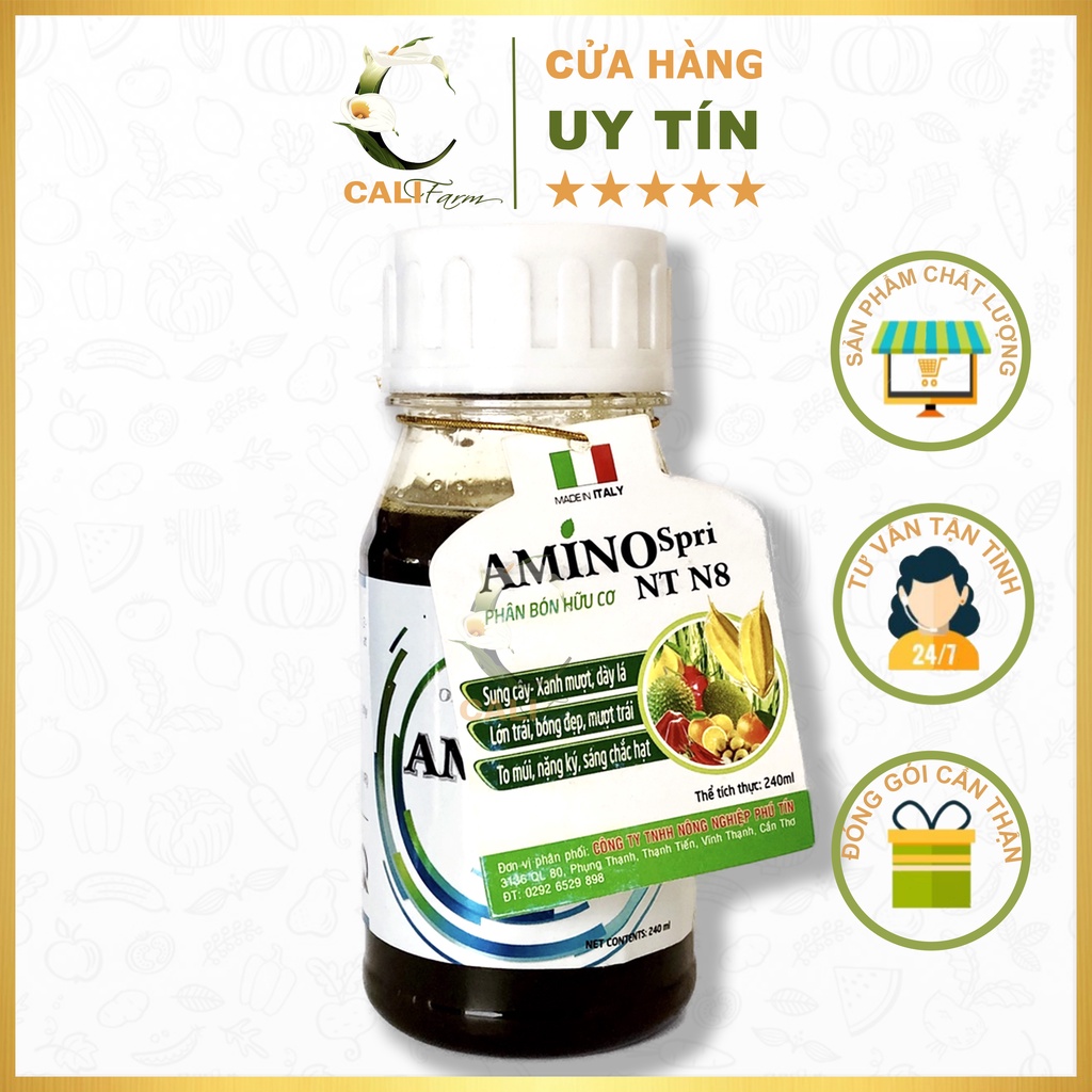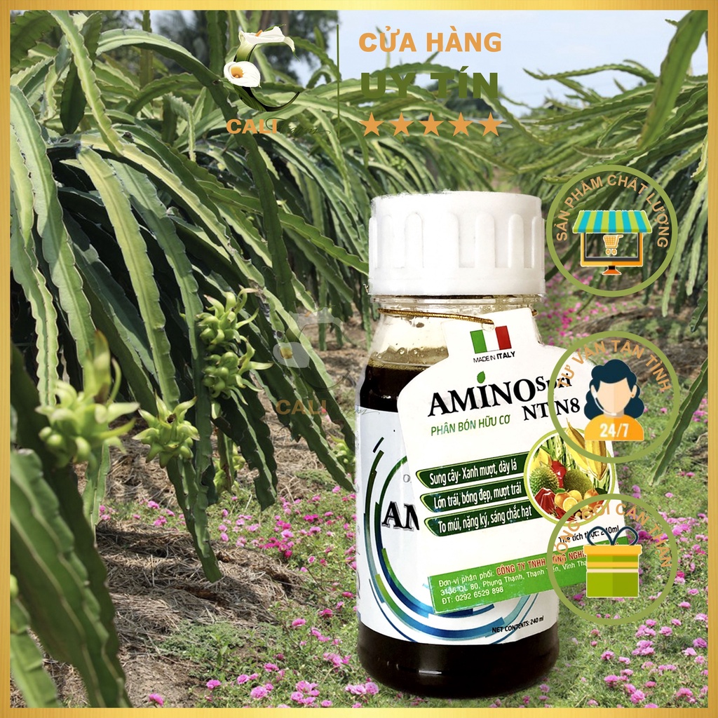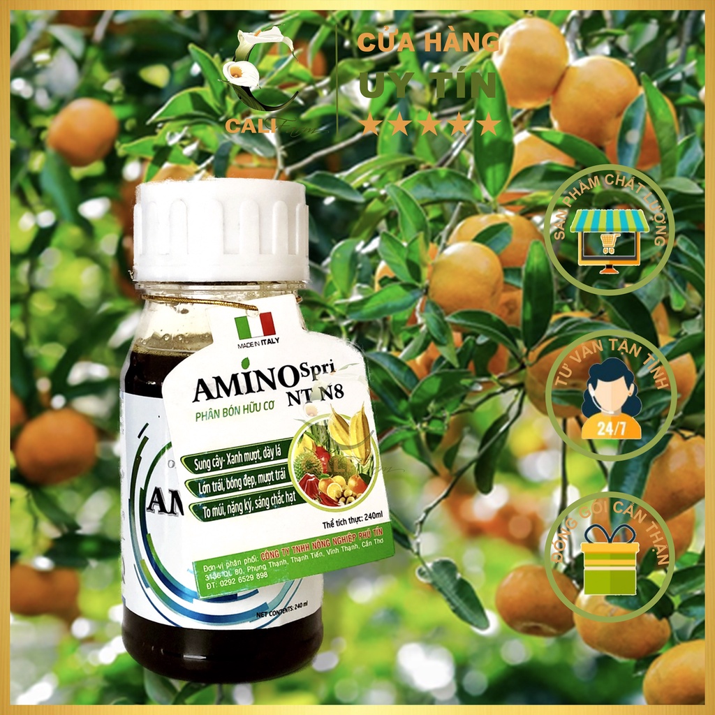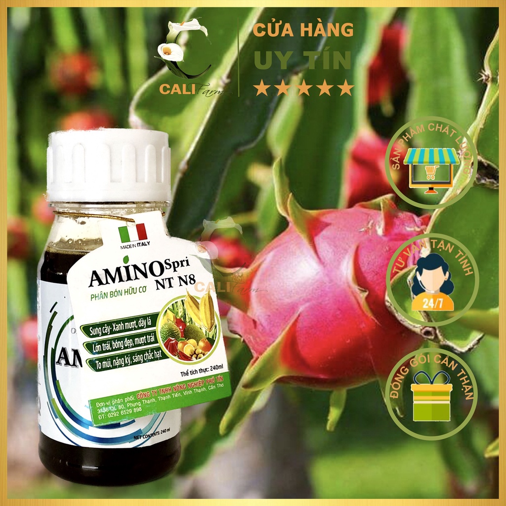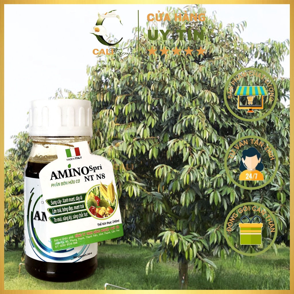 + Chỉ cần pha 3ml Amino N8 cho 1L nước. Tưới rễ hay phun lá, dùng trong giai đoạn nảy chồi, phục hồi lá và trái/củ non