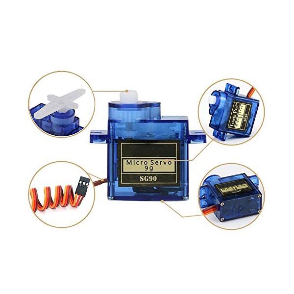 - Động cơ RC Servo 9G là động phổ biến dùng trong các mô hình điều khiển nhỏ và đơn giản như cánh tay robot. Động cơ có tốc độ phản ứng nhanh, được tích hợp sẵn Driver điều khiển động cơ, dễ dàng điều khiển góc quay bằng phương pháp điều độ rộng xung PWM.