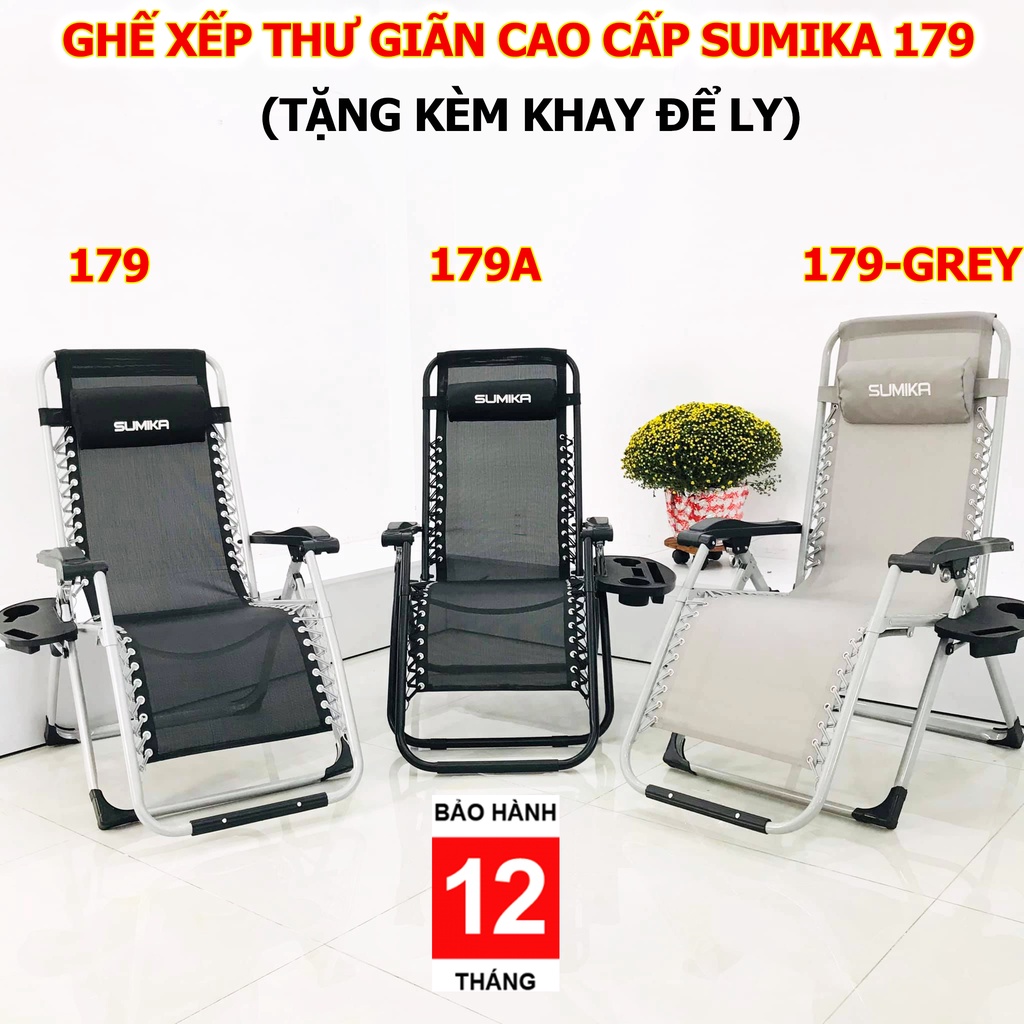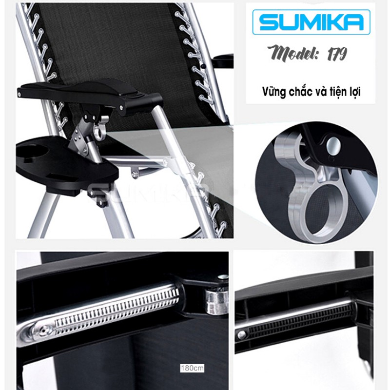 Ghế gấp xếp thư giãn đa năng SUMIKA 179 NEW (tặng khay đựng ly)