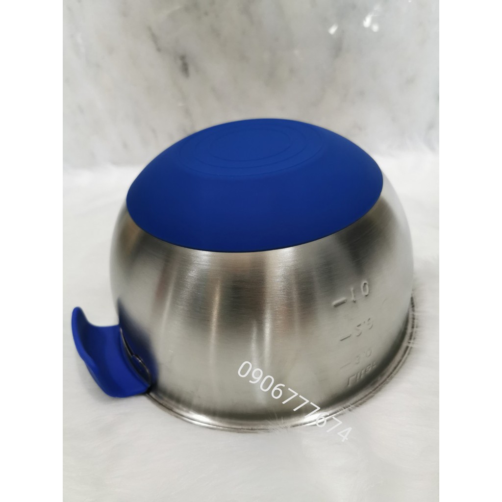 - Kích thước: thành dày, phần đế có silicon giúp chống trượt, tay cầm silicon giúp dễ cầm nắm khi chế biến, phần lòng bát thiết kế sâu lòng giúp dễ trộn thức ăn lại không bị văng ra ngoài.