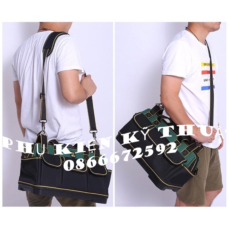 🛠 Túi đựng đồ nghề kỹ thuật đủ kích thước To - Vừa - Nhỏ thích hợp đựng đồ nghề kỹ thuật, dụng cụ sửa chữa gia đình: Búa, khoan, tuavit, kéo...👉Túi được làm từ chất liệu sợi đặc biệt 3 lớp chống vật nhọn đâm thủng, chống thấm nước giúp bảo vệ dụng cụ khi trời mưa.
