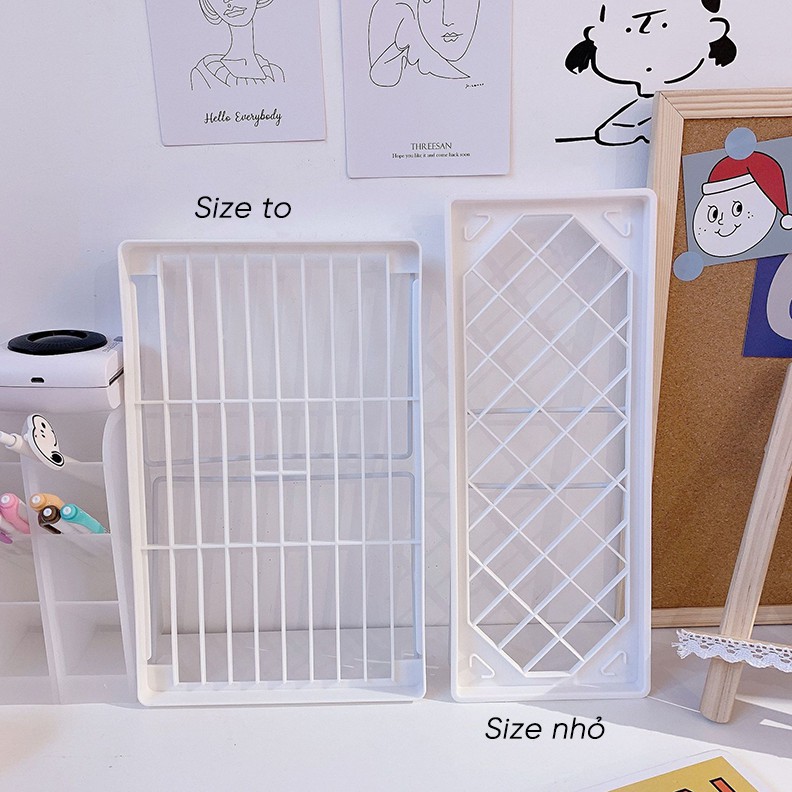 - Sản phẩm có 2 size lớn và nhỏ, giá nhỏ đan lưới chéo, giá to lưới sọc ngang.