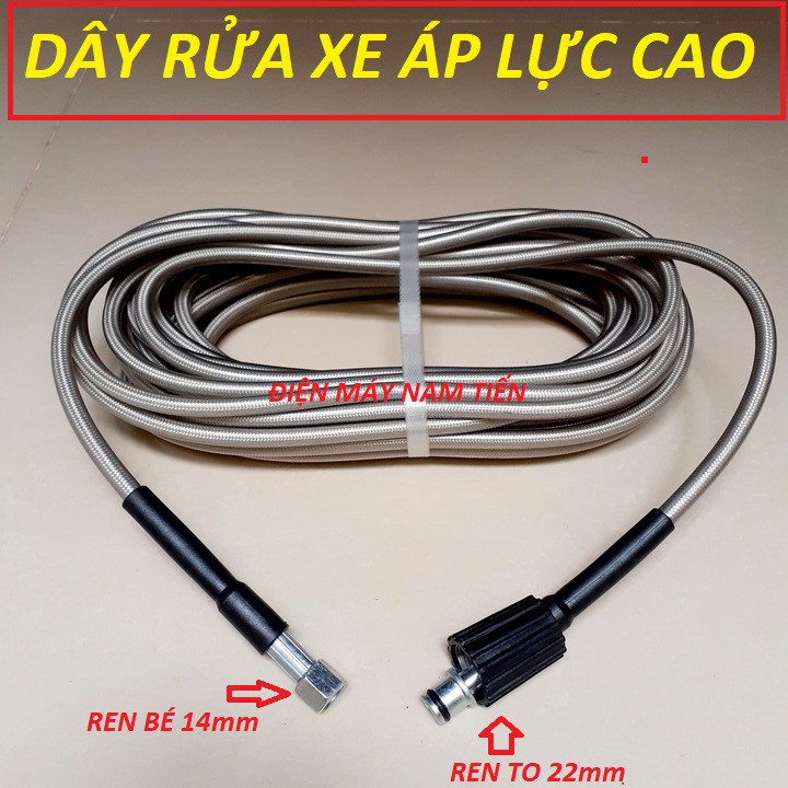 Giới thiệu Dây Rửa Xe 10m,15m.20m Cho Máy Bơm Xịt Rửa Áp Lực Cao - Ren nối sung 14mm