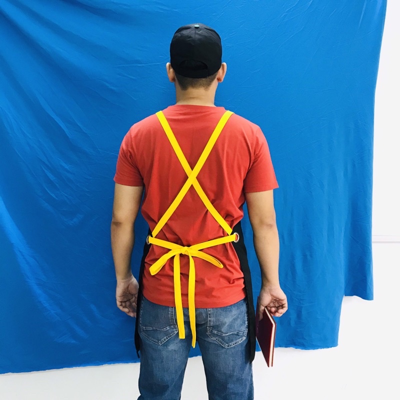 - Size: free size Nam Nữ đều sử dụng được vì đối với tạp dề yếm trên cổ có tăng đơ để tăng giảm độ dài tạp dề.