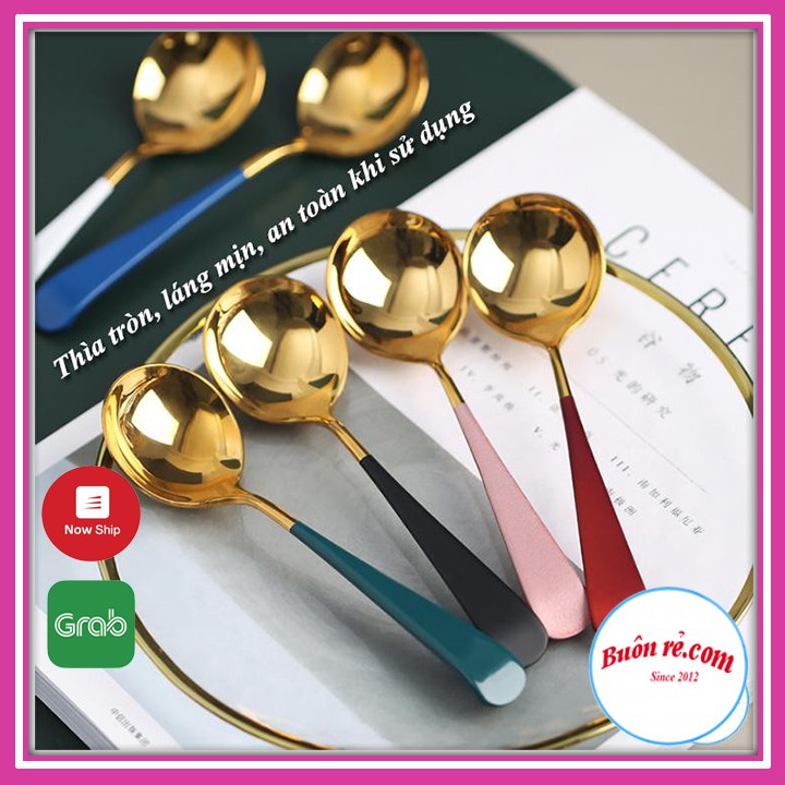 ✔️ Thìa Inox Mạ Vàng Cán Dài Nhiều Màu Với thiết kế tròn, rộng phù hợp khuôn miệng, dễ dàng xúc cơm, soup, cháo...