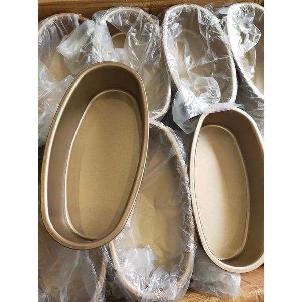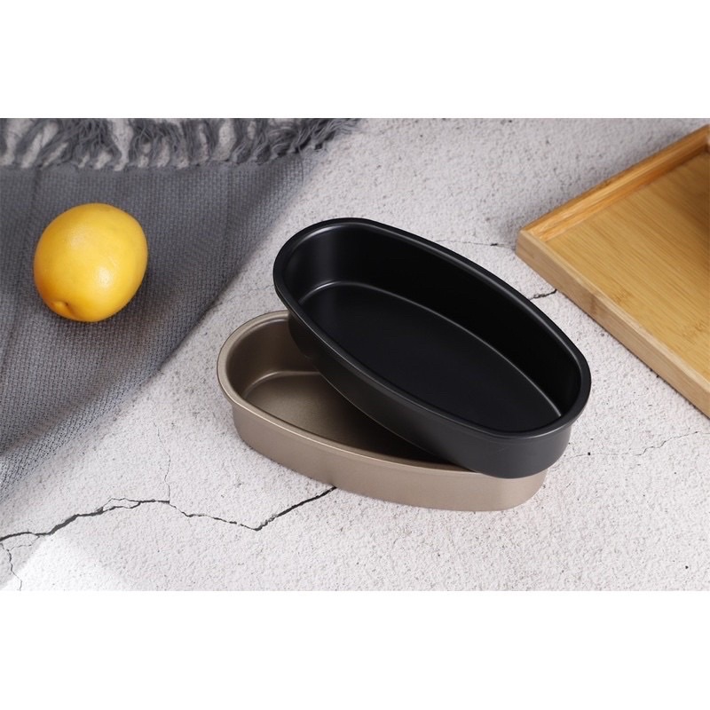 Khuôn oval chống dính màu vàngKích thước: 22x10cm, cao thành 6cm (sai số +- 1cm)