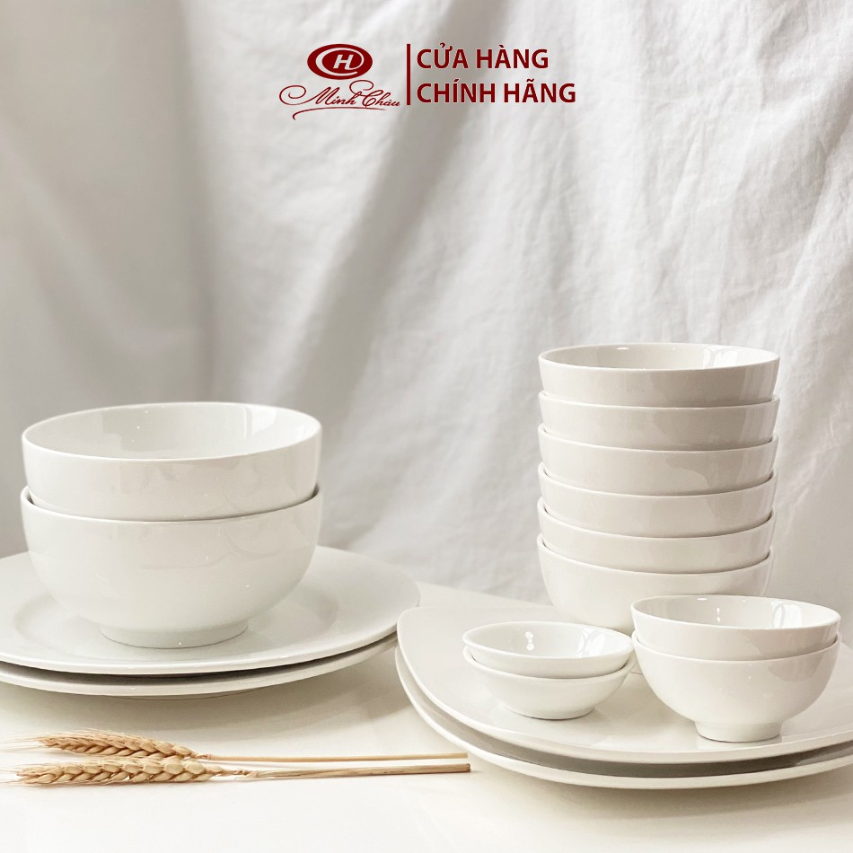 Giới thiệu [Mã 155LIFESALE giảm 8% đơn 99K] Bộ Bát Đĩa Sứ Trắng Trơn 16 Món Cỡ Vừa - Sứ Minh Châu