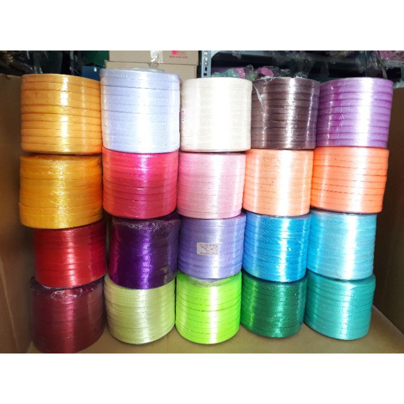 1 lốc ruy băng vải 5mm 10 cuôn, mỗi cuộn dài 25yard, 1 lốc 10 cuôn 1 màu, chất liệu vải sa tin dày dặn, dùng làm nơ trà , cột nơ mai đào ...vvvGiá APP