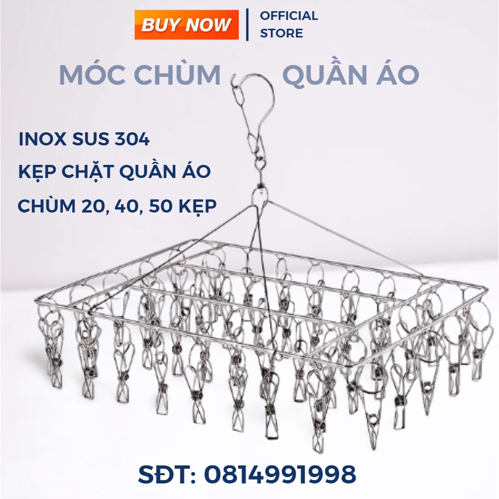 Móc Chùm Inox 304 Cao Cấp Bền Đẹp, Mắc Phơi Quần Áo