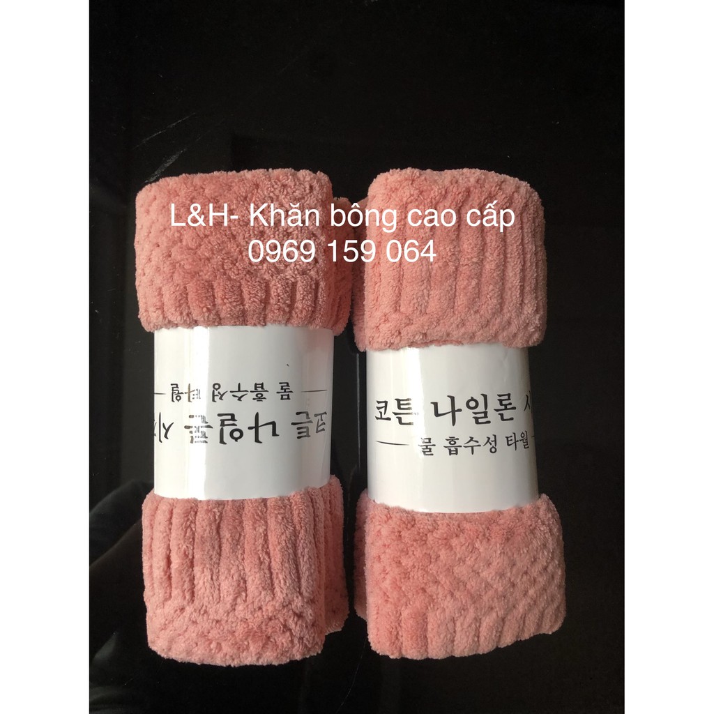 Khăn lau đầu, gội đầu, lông cừu, hạt gạo, KT 35x75cm