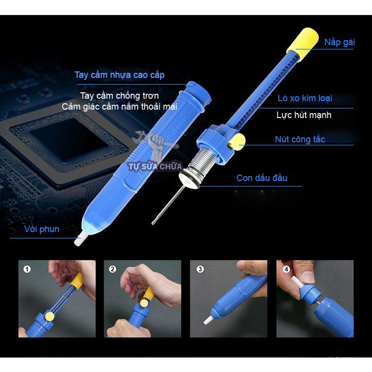 Giới thiệu Dụng cụ hút thiếc, hút chì loại xịn lực hút mạnh