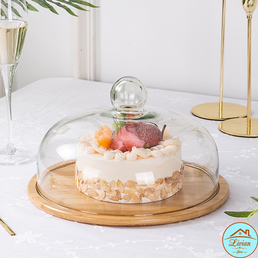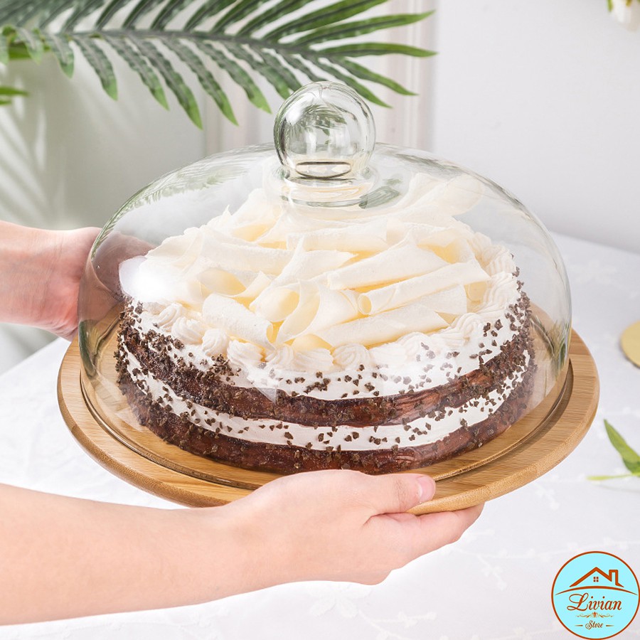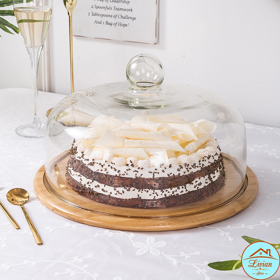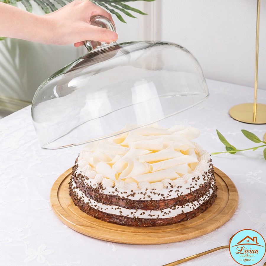 Nhà cửa & Đời sống > Bộ đồ bàn ăn > Lồng bàn || [Mã 155LIFESALE giảm 8% đơn 99K] [Mã LIFEHLSALE1 giảm 10% đơn 150K] Úp bánh thủy tinh kèm khay gỗ tre 29cm, 32cmCòn hàng