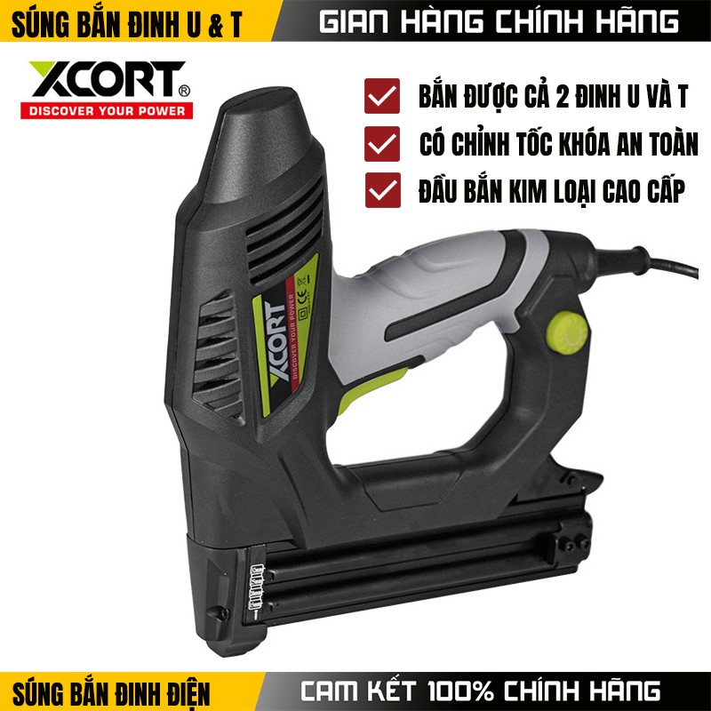 Súng bắn đinh điện Có thể bắn 2 loại đinh U và T,có chỉnh tốc,có khóa an toàn(Tặng kèm 300 Đinh U và 100 đinh T)✅ GIỚI THIỆU XCORT XCORT công nghệ của Đức nhà máy sản xuất đặt tại Hồng Kong và Trung Quốc ,thiết bị sản xuất theo tiêu chuẩn khắt khe của thị trường châu âu là thương hiệu lớn cạnh tranh trực tiếp với Bosc.h của úc Ma.kita