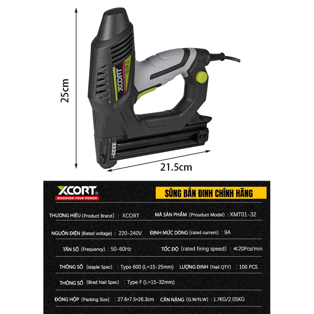 Nhà cửa & Đời sống > Dụng cụ & Thiết bị tiện ích > Dụng cụ > Khác || Súng Bắn Đinh Điện XCORT,Máy bắn đinh điện XCORT,Bắn Đinh U Và T,Bảo Hành 18 ThángCòn hàng