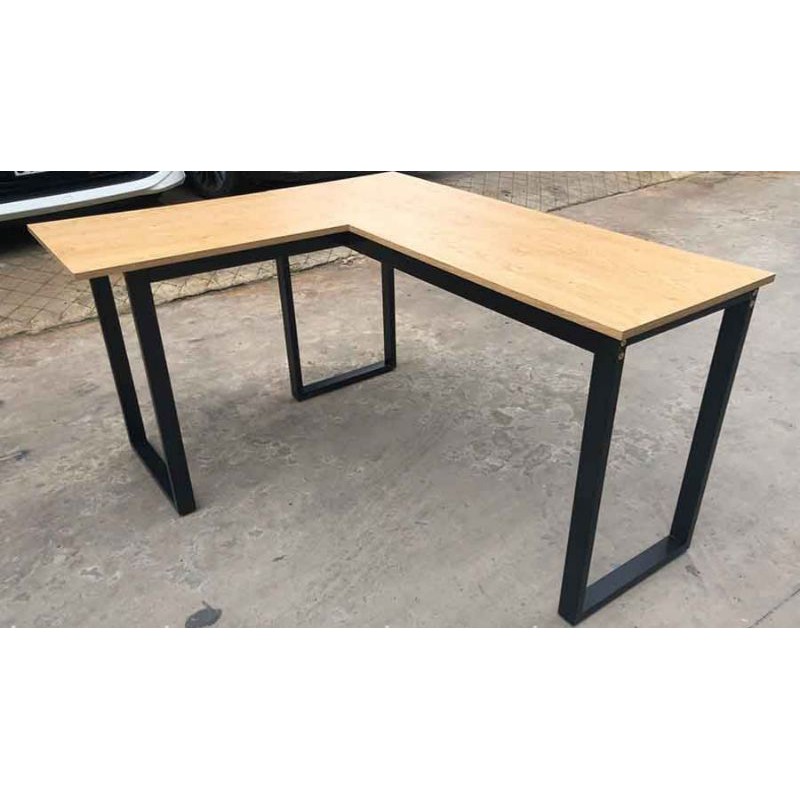 Bàn làm việc chữ l chân sắt mặt gỗBàn làm việc là loại bàn làm việc chân sắt mặt gỗ kiểu đứng có lượn góc chữ L rất đẹp phù hợp với việc bố trí tại góc văn phòng, hoặc tại vị trí không gian rộng rất phù hợp với nhu cầu làm việc cần không gian rộng