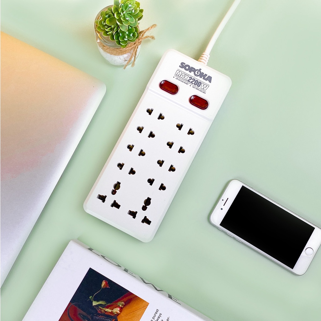 Thiết Bị Điện Gia Dụng > Mạch điện & Phụ tùng > Ổ cắm điện & Dây nối || Ổ cắm điện 10 lỗ cắm SOPOKA 10Y ổ điện chịu nhiệt, chống va đập tốtCòn hàng