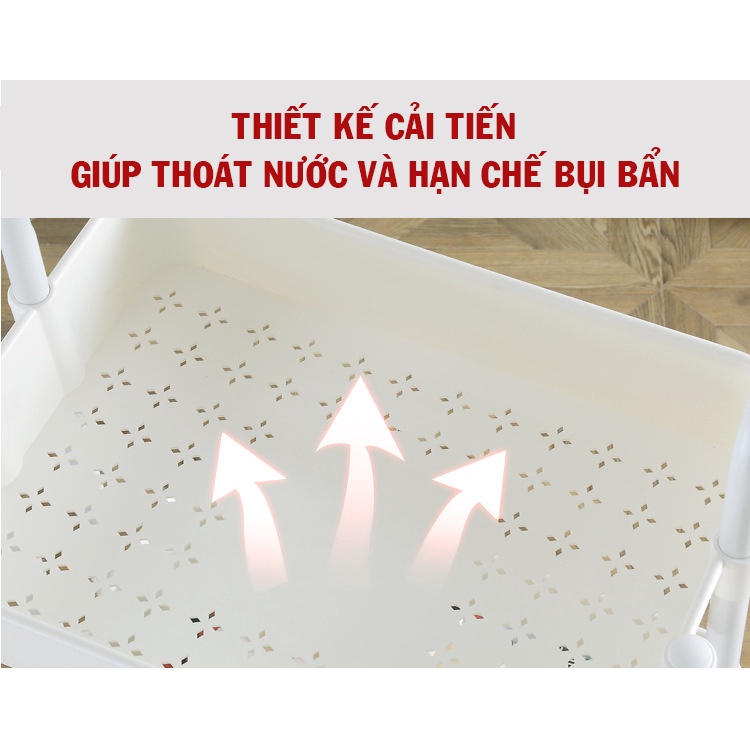 Ưu điểm dễ lau chùi hơi so với kệ bằng sắt, nhẹ hơn kệ sắt lên di chuyển dễ dàng.