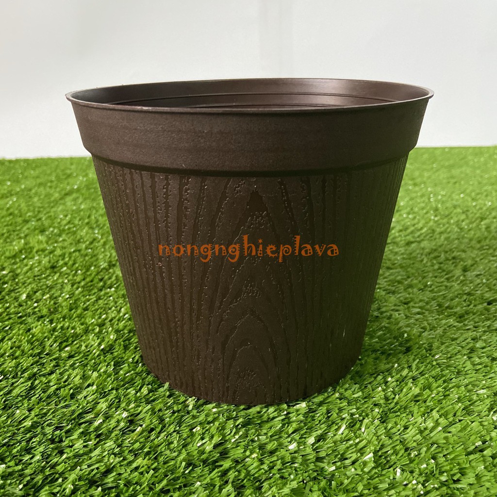 Chậu Nhựa Vân GỗDùng trồng các loại cây cao từ 20-50 cm,, chậu thiết kế đơn giản, thuận tiện khi di chuyển cây chậu hoặc thay đất,