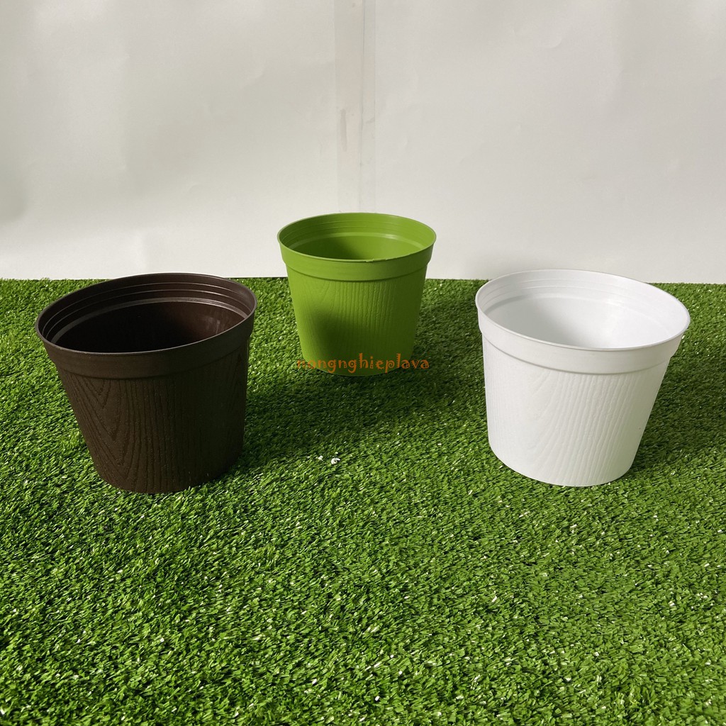 5 Chậu Nhựa Vân Gỗ Size 15x13cm Nhiều Màu Trồng Cây, Hoa Kiểng (Combo 5 Chậu)