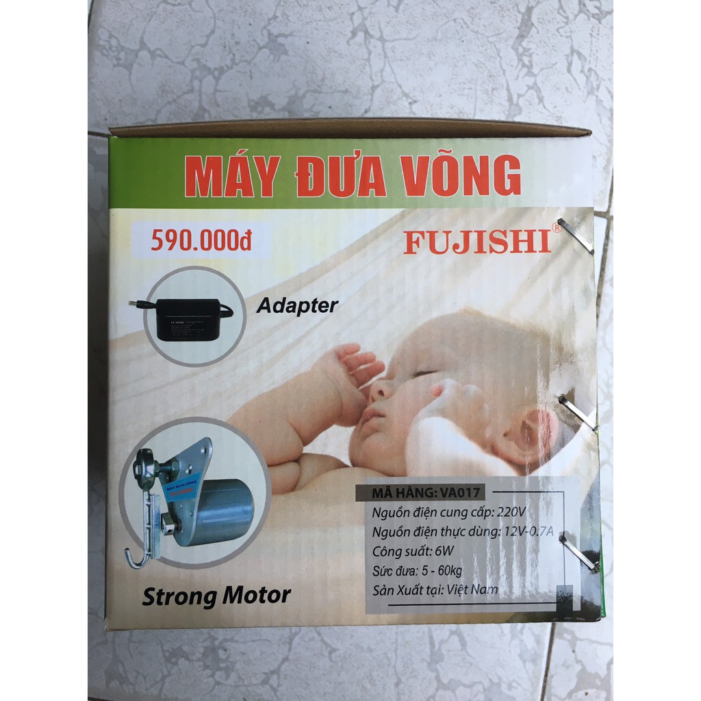 - Nguồn điện sử dụng cho máy đưa võng tự động: 12V - 0.7Ampe ở mức an toàn, không bị giật khi sờ tay vào, hoàn toàn tuyệt đối cho bé, nên cha mẹ có thể yên tâm khi sử dụng máy đưa võng tự động cho con, ngay cả khi cha mẹ bận việc không trực tiếp ngồi bên cạnh trông con.