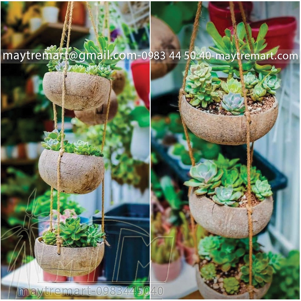 Chậu treo bằng gáo dừa ĐỘC ĐÁO+ trồng cây trang trí quán cafe, sân vườn, resort, homstay