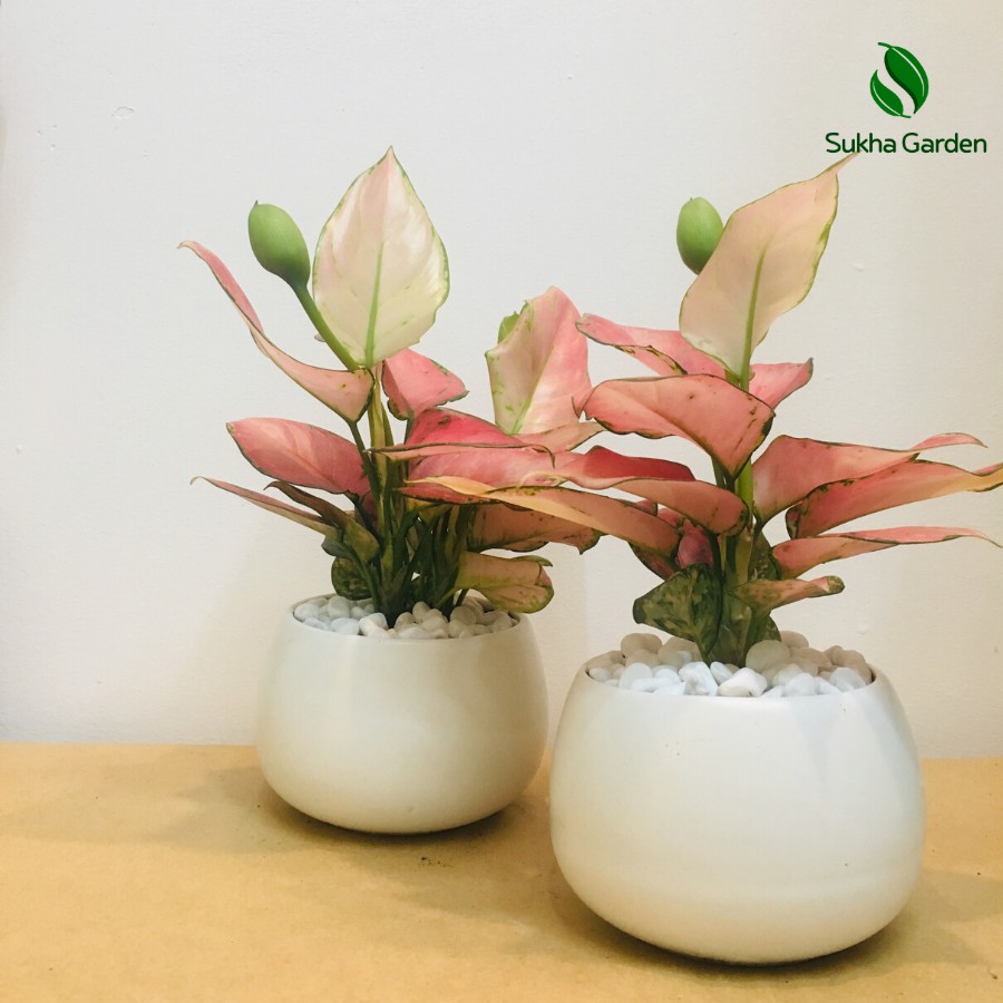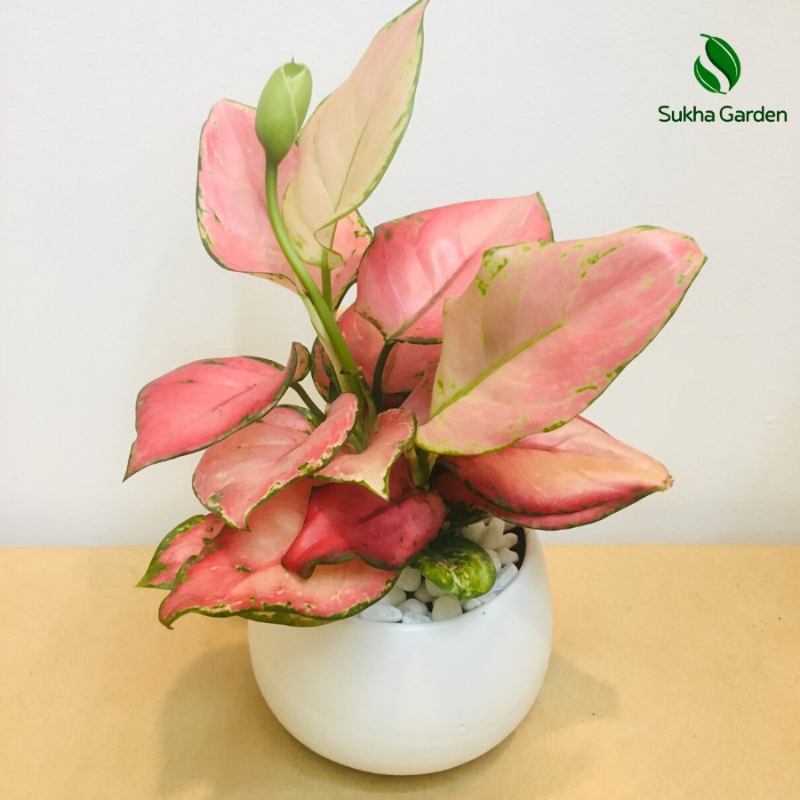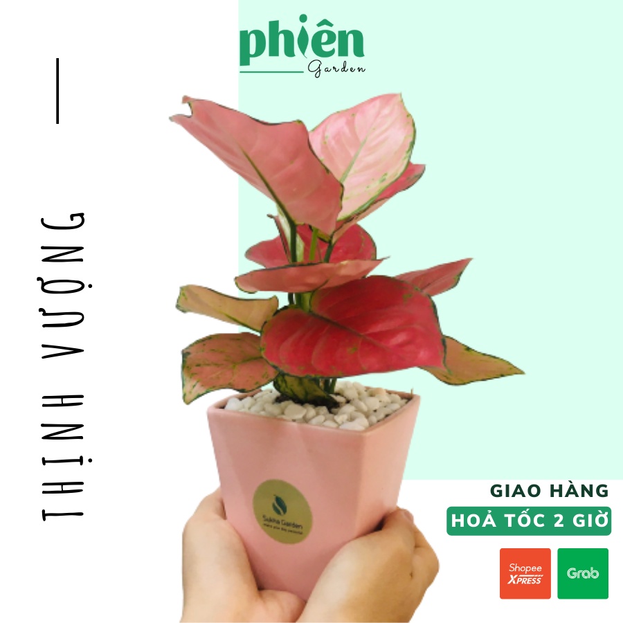 Nhà cửa & Đời sống > Làm vườn > Cây cảnh || Cây Thịnh Vượng, cây Vạn Lộc hồng để bàn kèm Chậu gốm tráng menCòn hàng