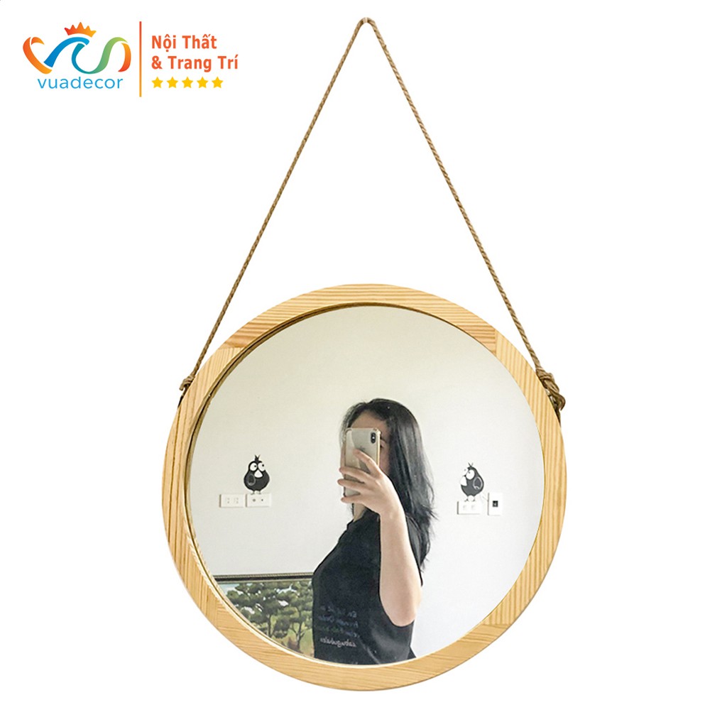 Gương Tròn Treo Tường VUADECOR viền gỗ cao cấp (tặng dây thừng và đinh treo)