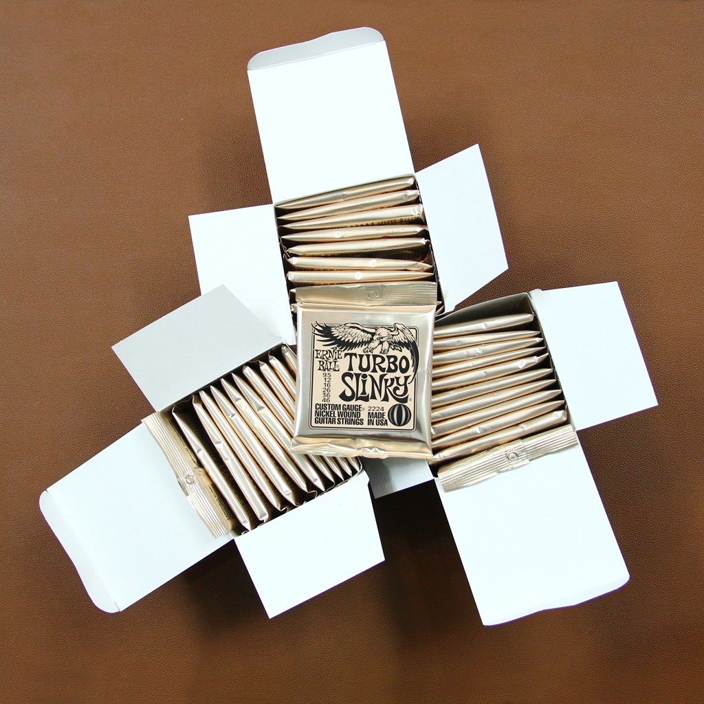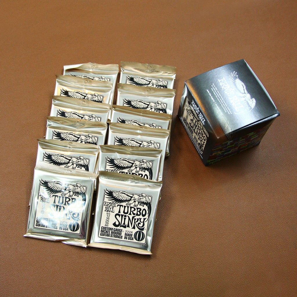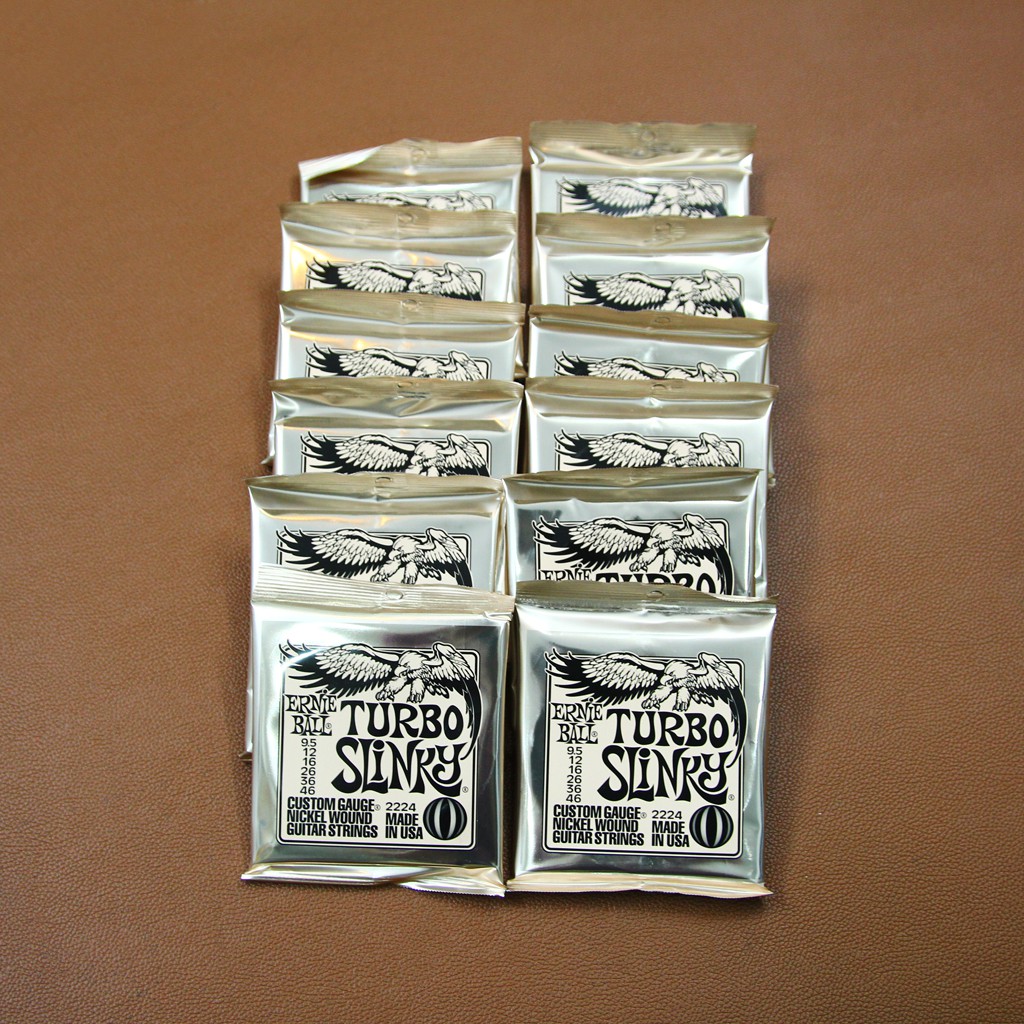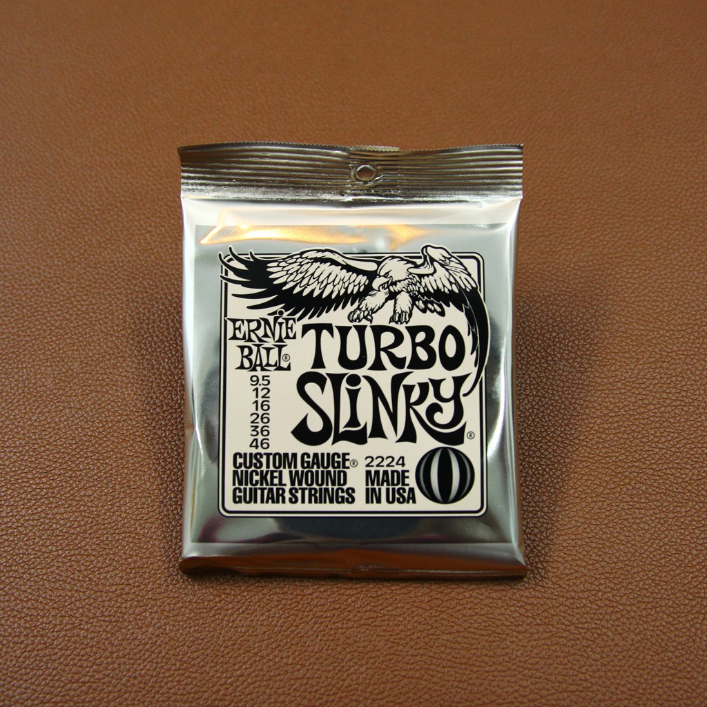 - Dây Đàn Guitar Điện Ernie Ball 2224 là mẫu phụ kiện dành cho đàn guitar điện (6 dây) thuộc series Turbo Slinky Nickel Wound của hãng Ernie Ball (Mỹ), Kích cỡ 9.5/46, đây là mẫu dây nằm trong Top 5 những mẫu dây guitar giá rẻ chất lượng rất tốt dành cho người tiêu dùng mong muốn giá rẻ.
