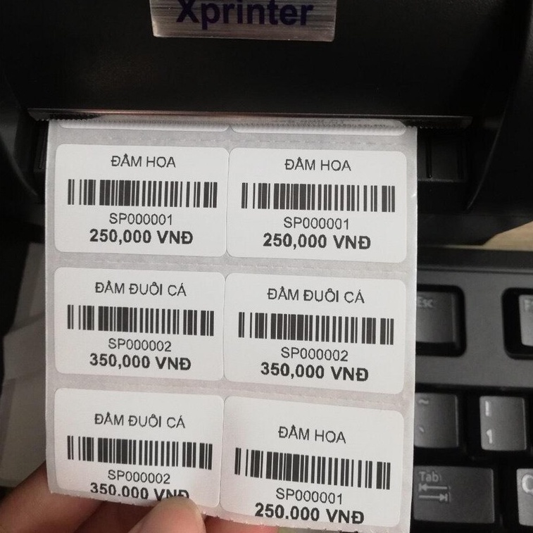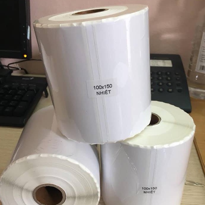 👉 Công dụng: Tem in nhãn trà sữa, tem in mã vạch, tem in thông tin hàng hóa dán trực tiếp lên sản phẩm.
